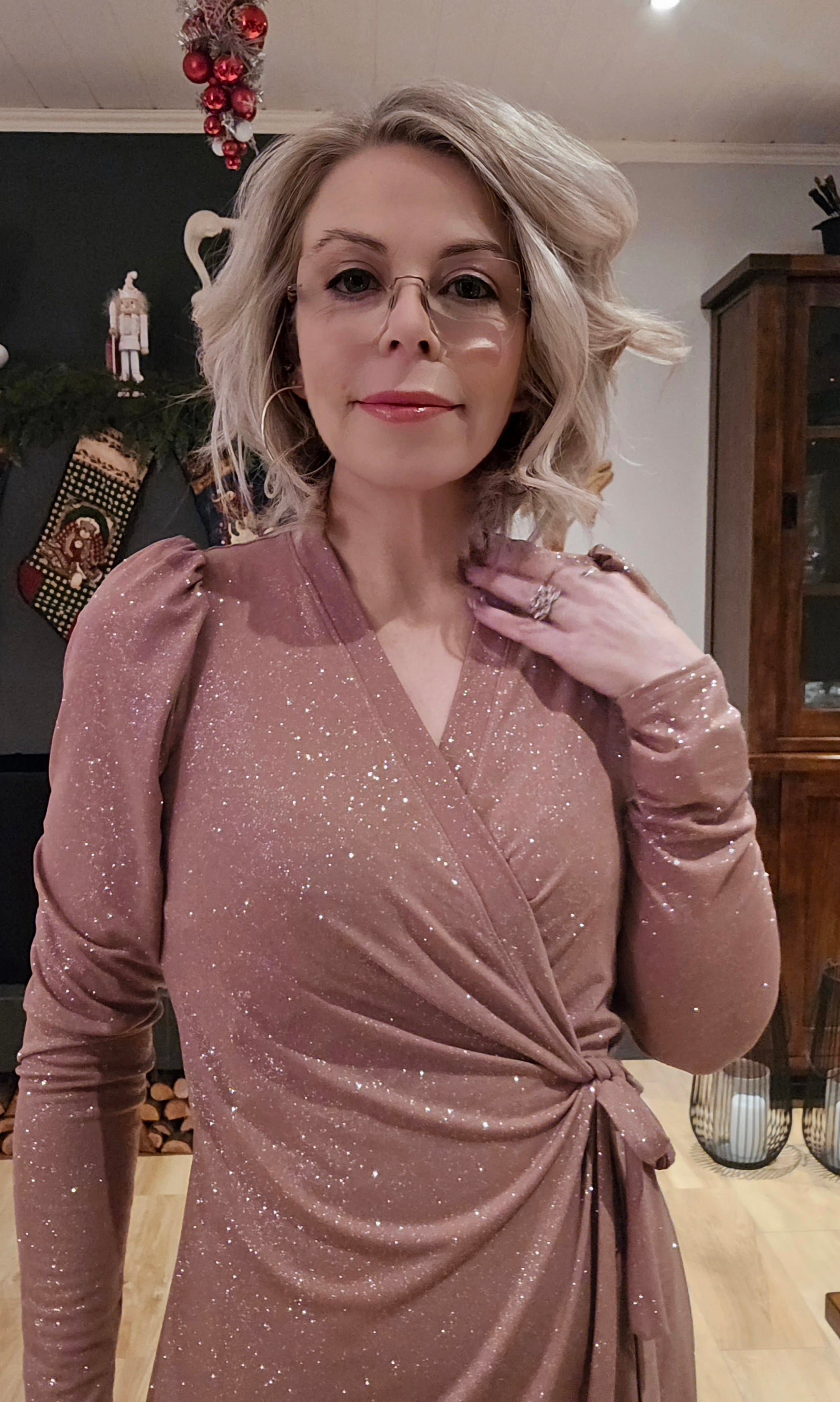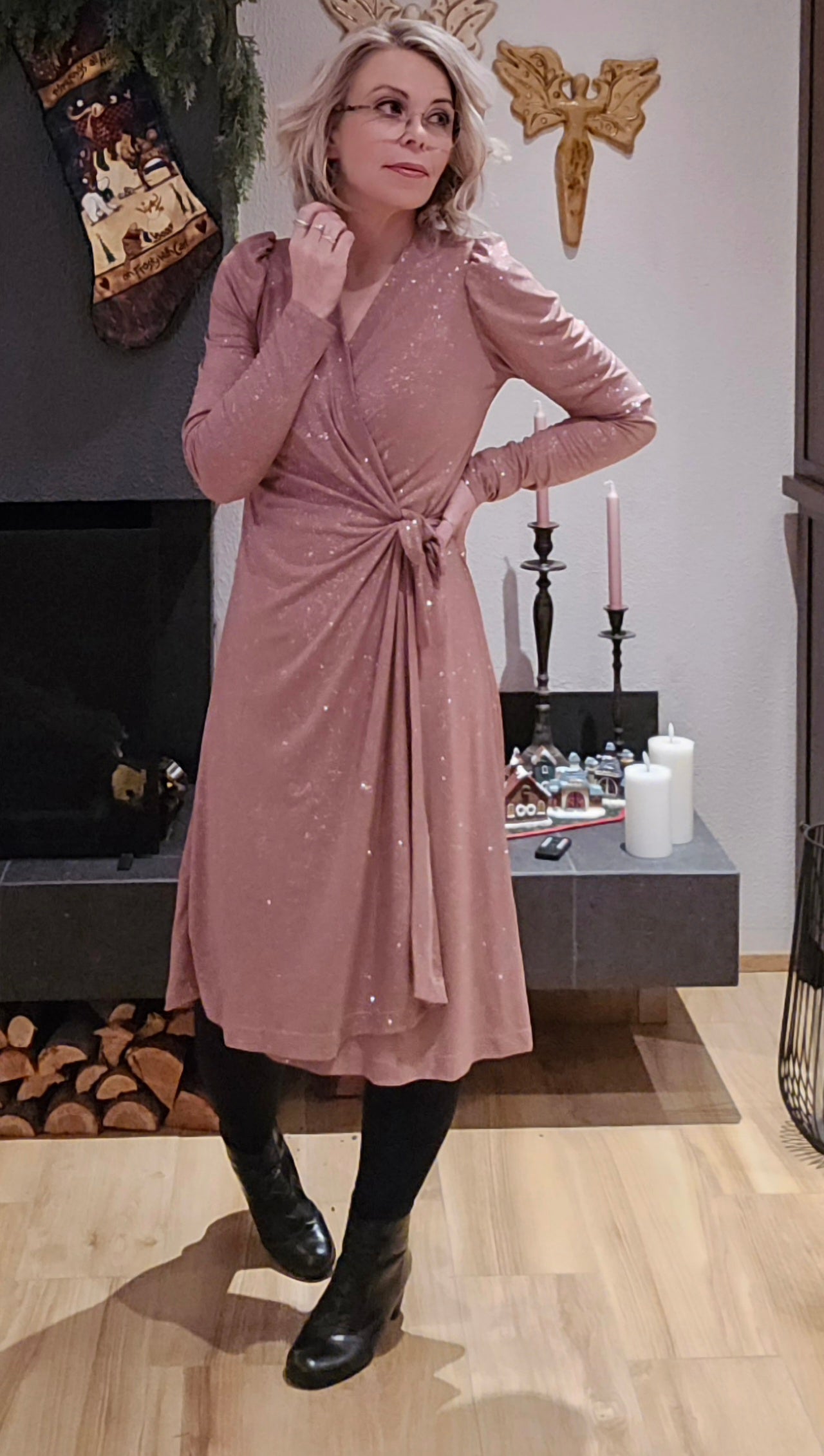 Kristín wrap-kjóll bleikur glimmer