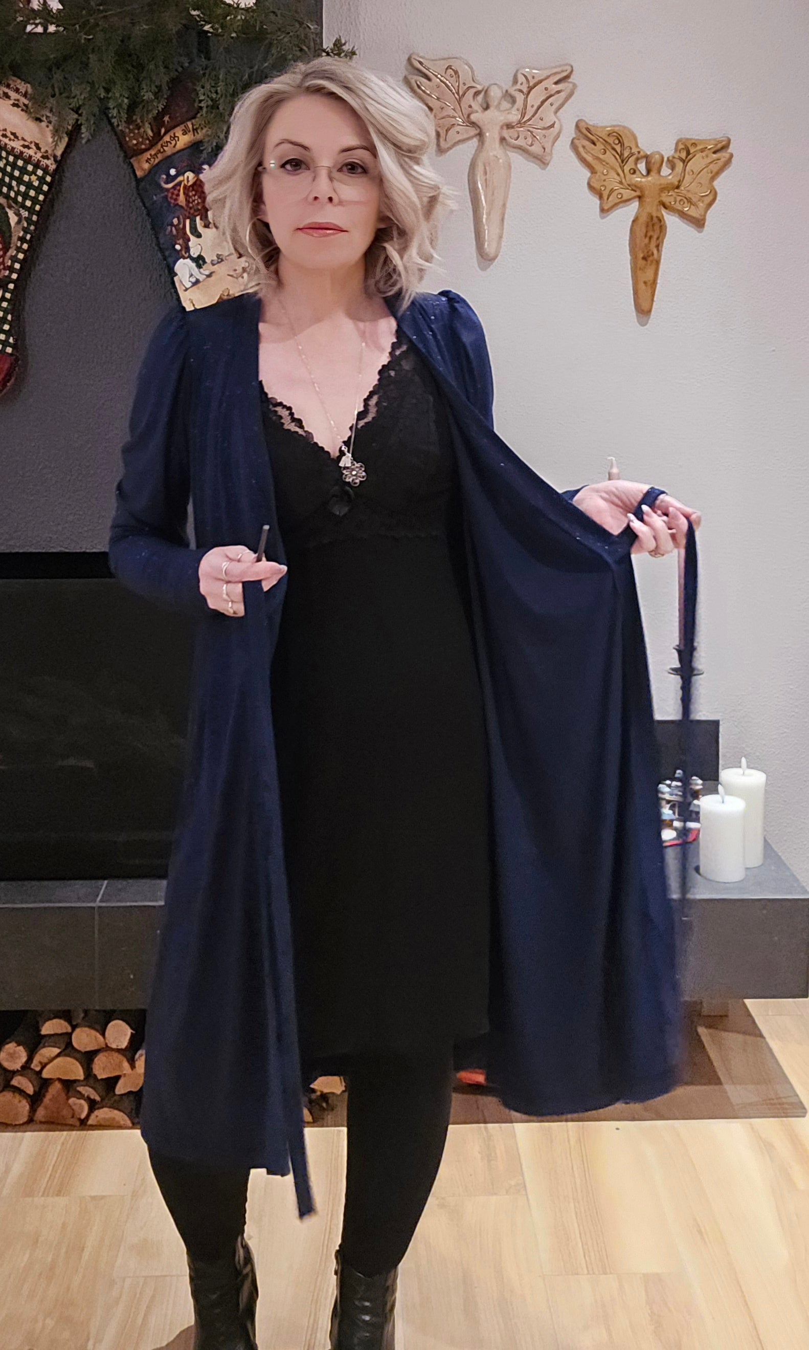 Kristín wrap-kjóll blár glimmer